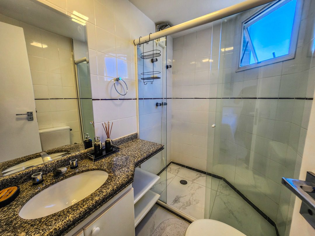 🛏 3 quartos, sendo 1 suíte 🚿 Banheiro social 🛋 Sala ampla e confortável 🌿 Varanda com churrasqueira ❄ Ar-condicionado e ventiladores de teto em todos os quartos e na sala 🚗 2 vagas de garagem